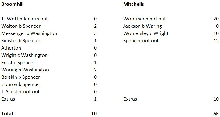 Home Sports Cricket Mitchells Main 55 for 2 Broomhill 10