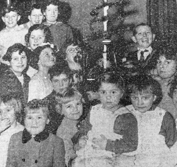 Children round the christmas tree at Mount Tabor Church, Wombwell, on Saturday, when Sunday School scholars enjoyed tea and a Christmas party.
